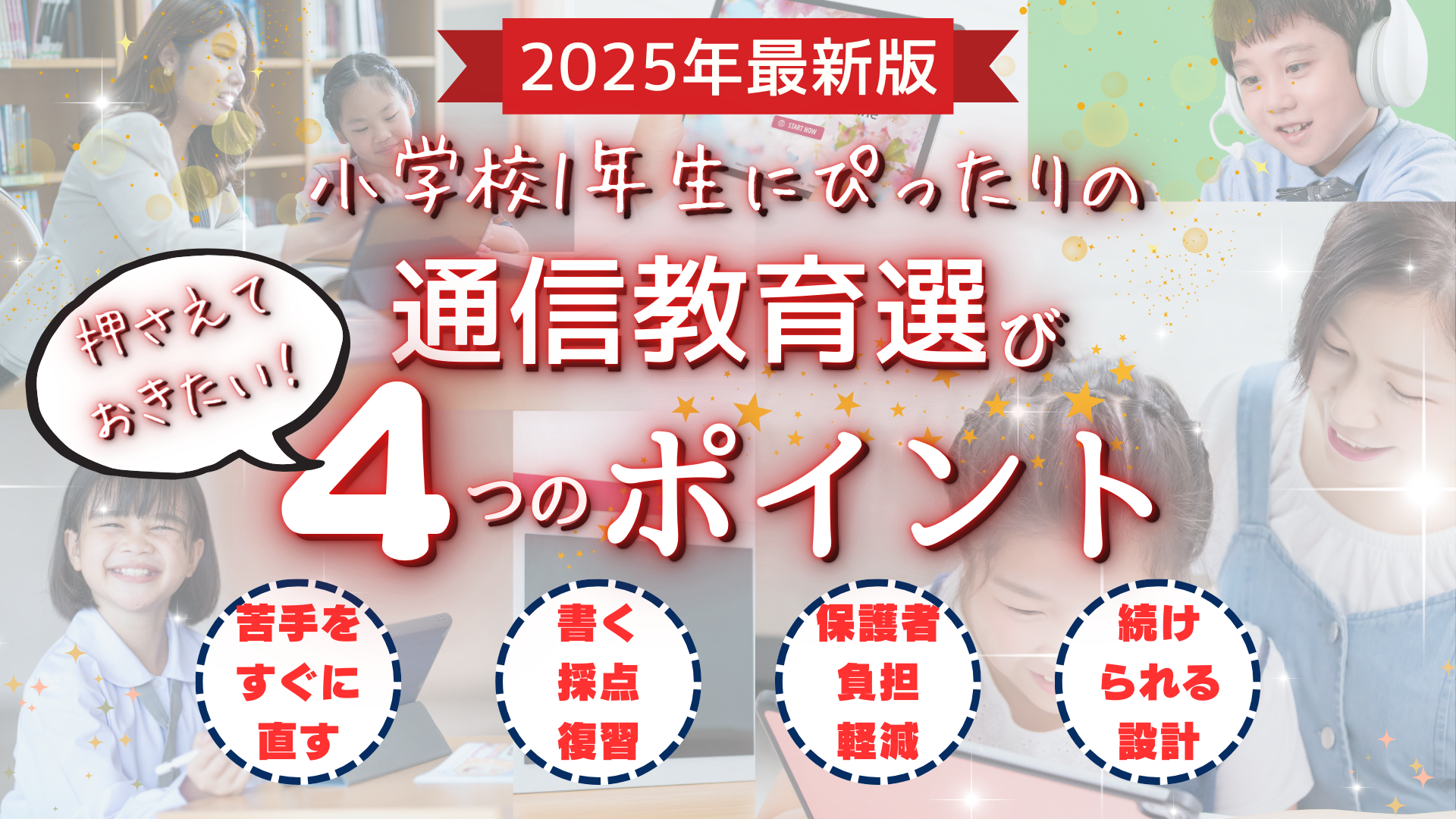 小学1年生の通信教育選びでまず押さえたいポイントとして、以下の4点が挙げられます。